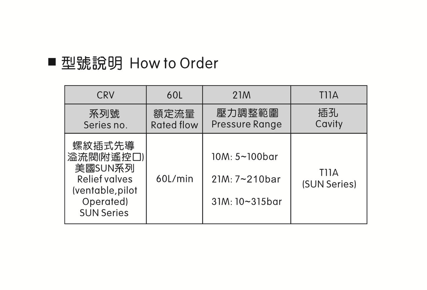 能, 常用于系統壓力控制.* 最大壓力:315bar