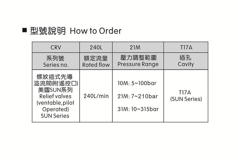 能, 常用于系統壓力控制* 最大壓力:315bar
