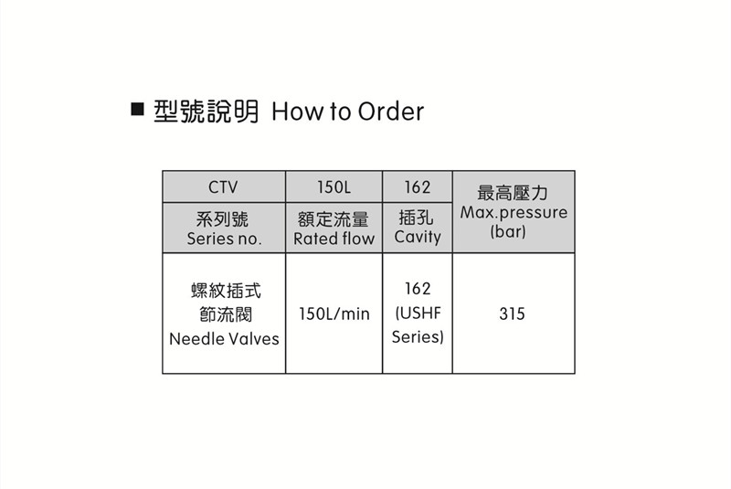 * 工作溫度:-17~90°C* 油質的清潔度為NAS11級, 需